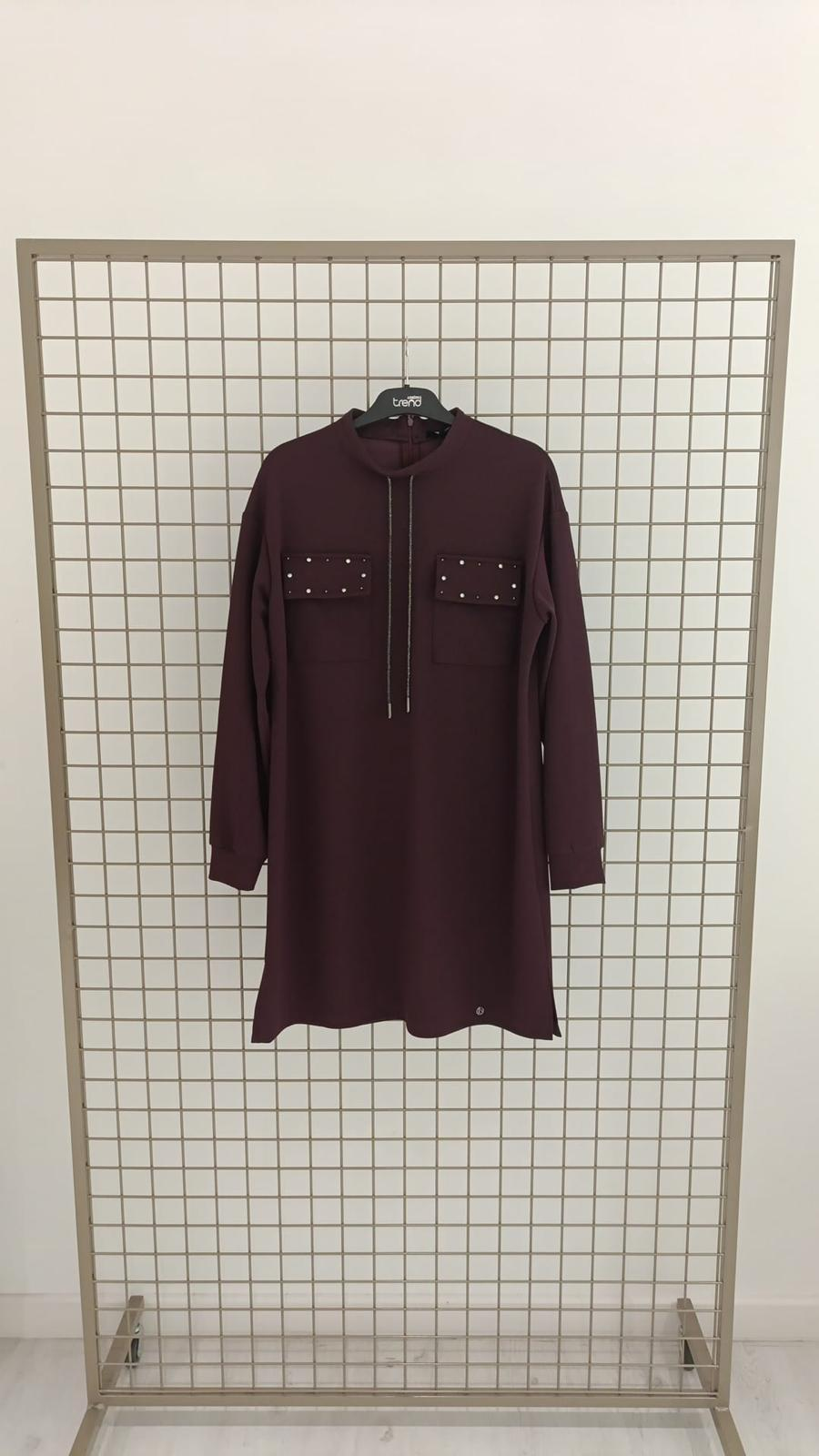 Armine Trend 25KT451 Cep Taş İşlemeli Tunik Mürdüm