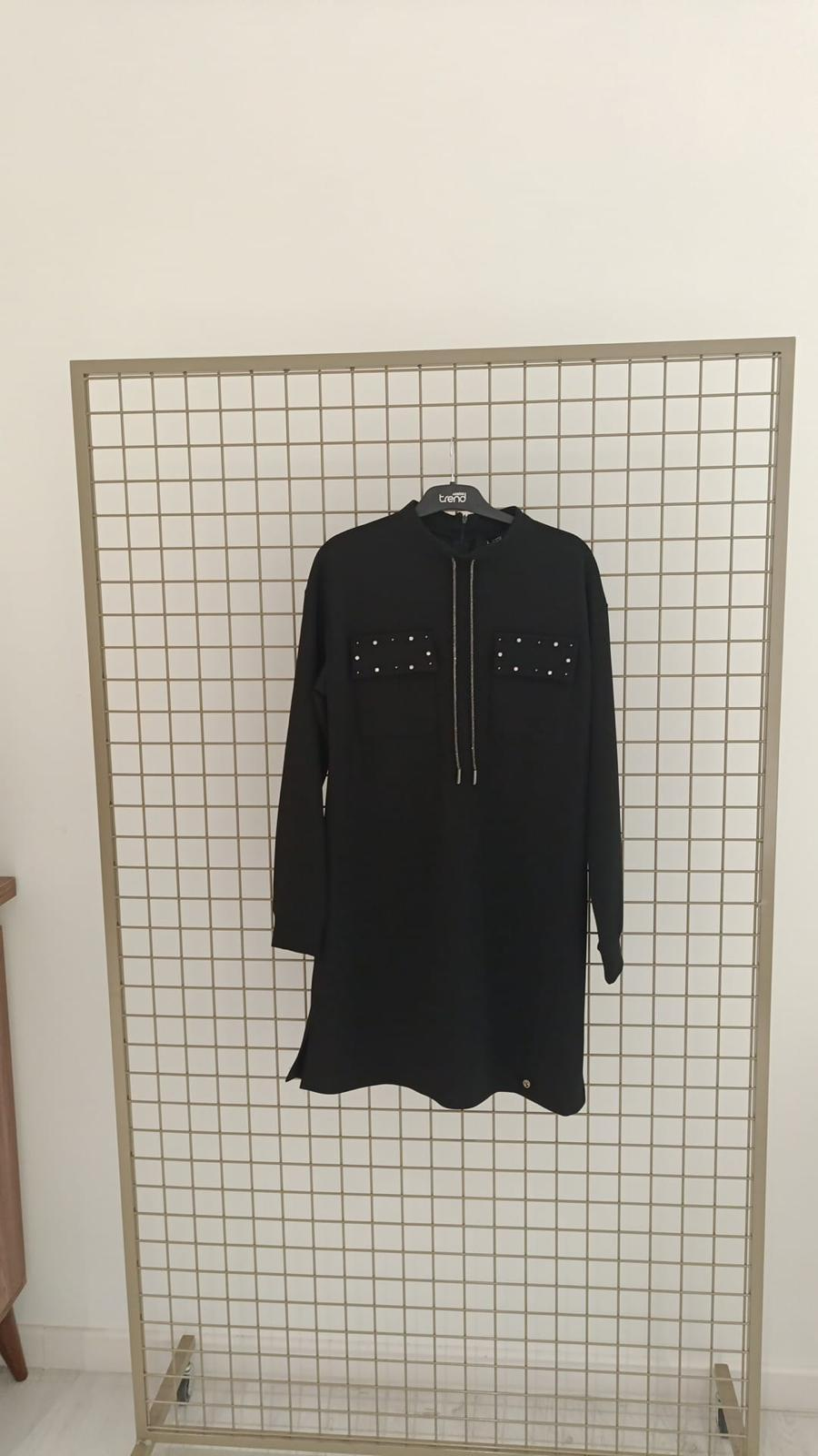 Armine Trend 25KT451 Cep Kapağı Taş İşlemeli Tunik Siyah