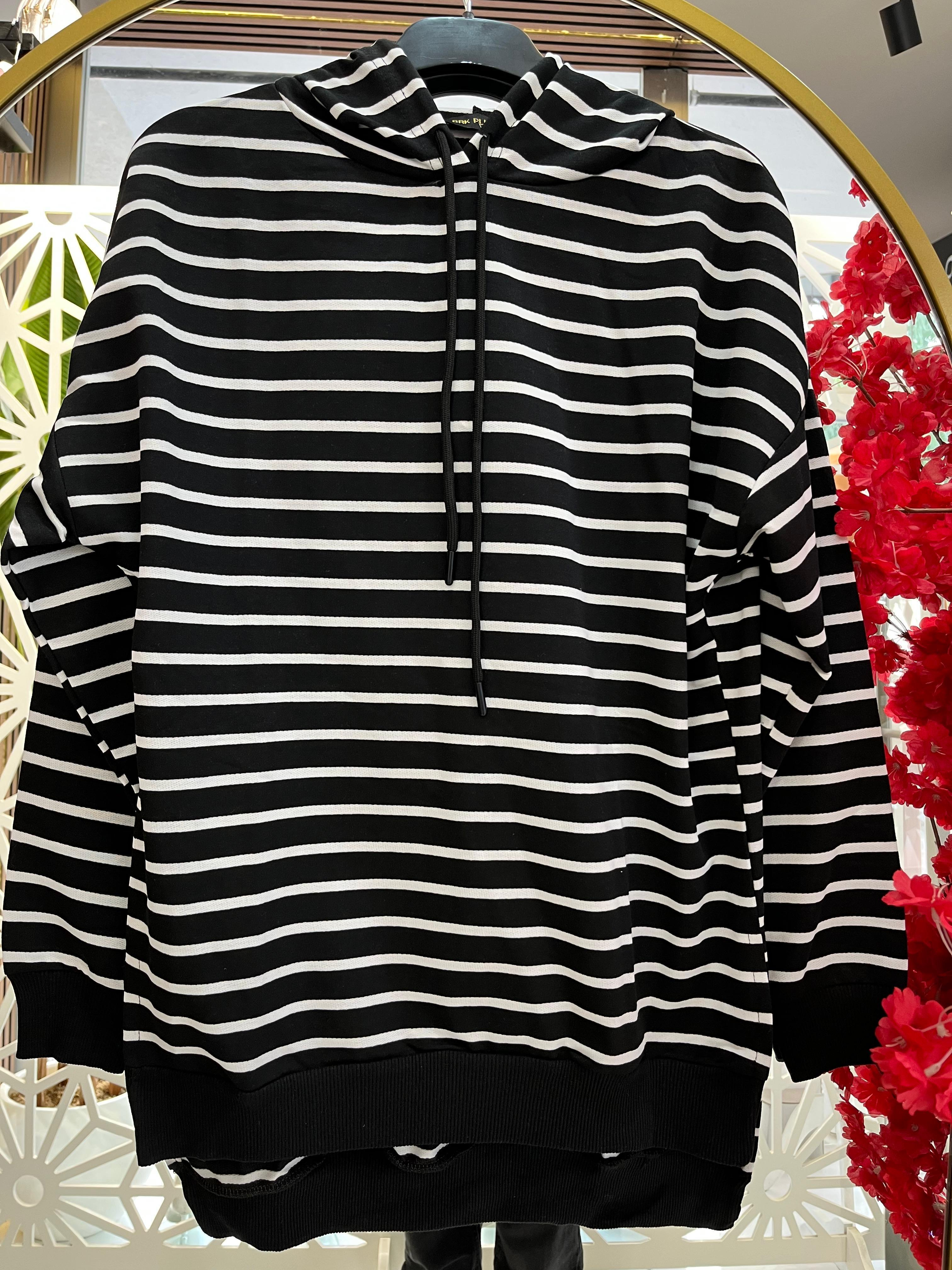 Mesica Yatay Çizgili Kapişonlu Tunik