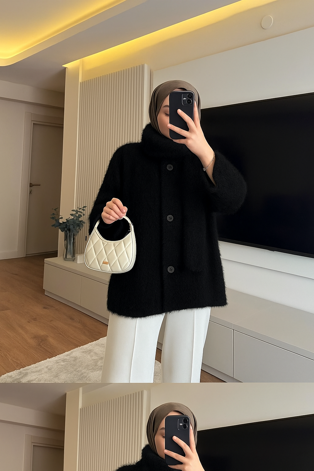 Yumuşak dokusu, modern atkı detayı ve zarif duruşuyla NURVIRA Atkılı Hırka, konforu ve şıklığı bir arada sunuyor.